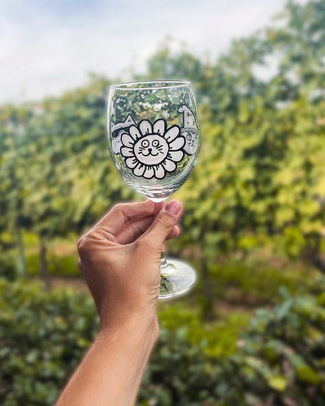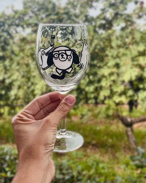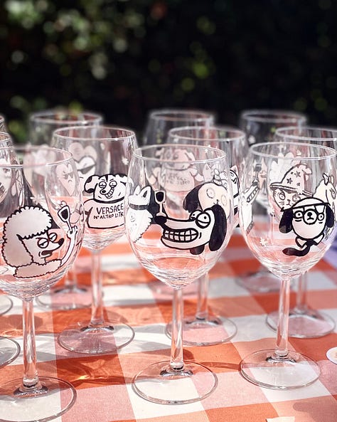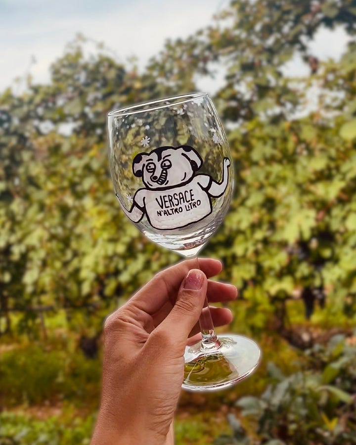Ho iniziato a realizzare calici da vino personalizzati. Un po’ per caso - come tutto d’altronde - poi ci ho preso gusto e mi sono inventata questa serie che si chiama Drunk Dogs & other drunkies.